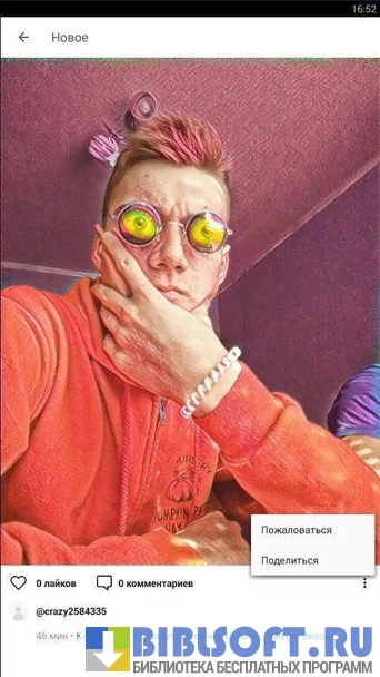 Приложение немного напоминает Instagram. Загрузив фотографию, к ней можно применить любой из предложенных фильтров, а полученным файлом тут же поделиться с подписчиками в соцсетях.