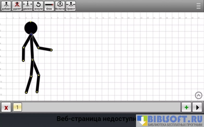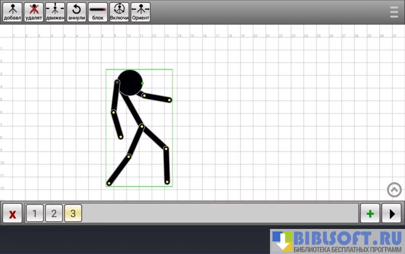 При первом запуске приложения в окне редактора появляется готовая модель. Можно использовать ее или создать свою. Анимация создается путем перемещения специальных красных точек или «узлов». После выбора каждого положения нужно нажимать на кнопку создания нового слайда, количество которых не ограничивается.