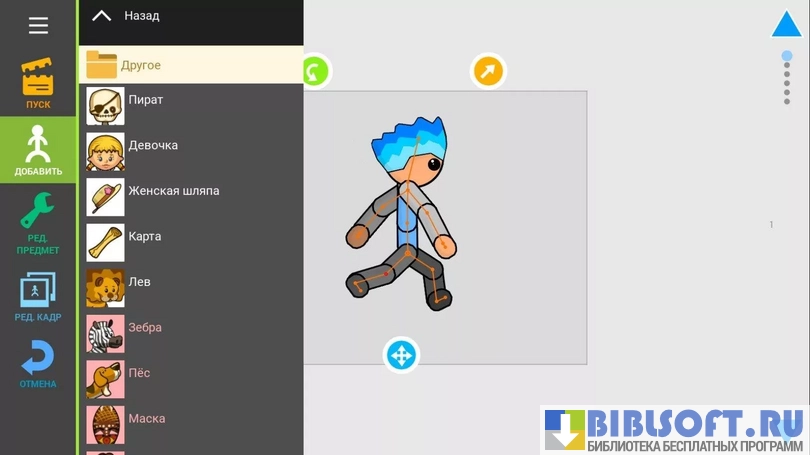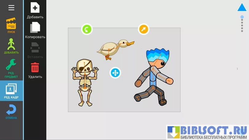 Draw Cartoons 2 – занимательная программа для создания анимации на Android устройствах. Пользователю доступно обучение, в котором разъясняются все функции приложения. Необходимы лишь несколько последовательных ключевых кадров, персонажи – и мультфильм готов. Для выполнения многокадрового рисунка предусмотрен большой выбор средств. Есть возможность озвучивания и сохранения видео. Для создания изображения нужно нажать на кнопку в верхнем углу справа. Откроется графический редактор, в котором можно рисовать самому или вставлять готовые элементы. Каждый объект состоит из точек, к которым крепятся элементы. Для создания объекта нужно собрать его и прорисовать детали.