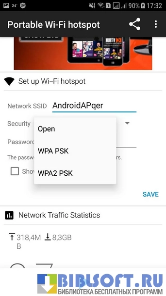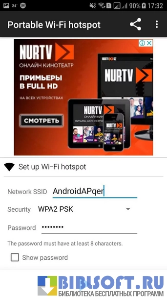 - Корректирует SSID-имя, пароль WPA-2, скорость раздачи интернета, максимальное количество слотов подключения и другие параметры, в соответствии с заданными пользователем атрибутами при нажатии «Настроить точку доступа Wi-Fi»;