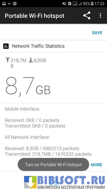 Portable Wi-Fi hotspot – сервисная утилита для Android устройств, позволяющая перевести Wi-Fi модуль пользовательского аппарата в режим точки доступа в один клик.