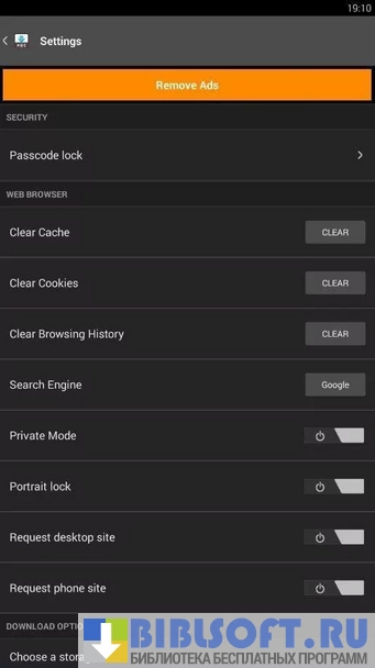 Функционал Downloader & Private Browse