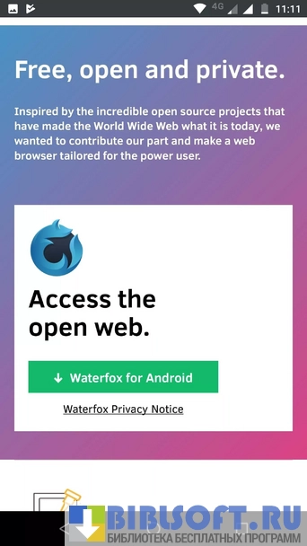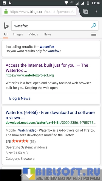 Waterfox – кроссплатформенный браузер, адаптированный в том числе и под платформу Android. Прототипом программы стала 64-разрядная любительская сборка браузера Firefox, так как официальной версии на момент создания приложения не существовало.