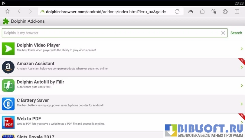 Dolphin Browser – функциональный и не большой по размеру браузер, который отлично оптимизирован для работы на слабых устройствах. Файлы Кэша можно сохранять на внешнюю Micro SD карту, что позволяет освободить собственную память смартфона.