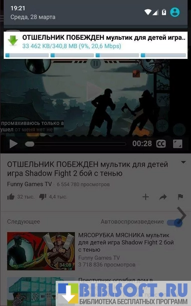 - быстрое скачивание видео;