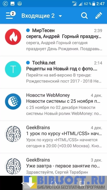 - Логотипы сервисов и аватары друзей. Фотографии позволяют быстрее ориентироваться в списке писем.
