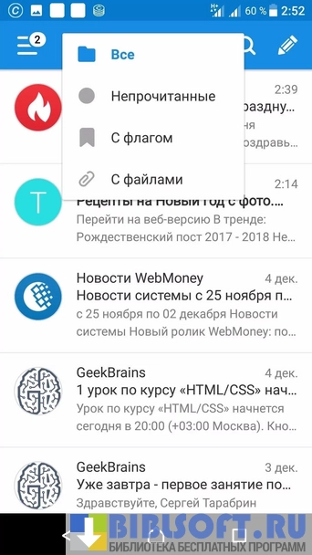 - Push-уведомления. Позволяют мгновенно узнать о новом письме.