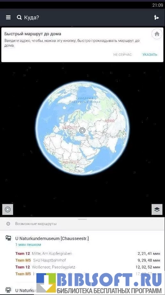 HERE WeGo – приложение для Android гаджетов, которое поможет проложить самый удобный маршрут к точке вашего назначения. Для этого нужно выбрать или скачать карту необходимого города и выбрать средство передвижения: пешком, велосипед, автомобиль, общественный транспорт, такси или другое из списка в приложении. Утилита предложит пользователю все возможные маршруты и опишет их.