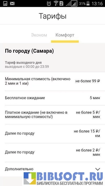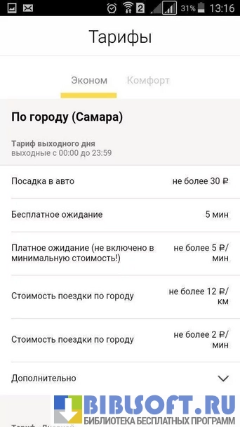 В зависимости от требований к поездке, пользователь может выбрать один из доступных тарифов: