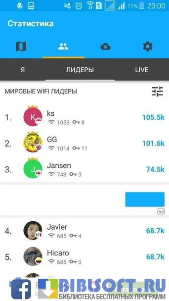 • возможность обмениваться сведениями о точках доступа в социальных сетях с друзьями;