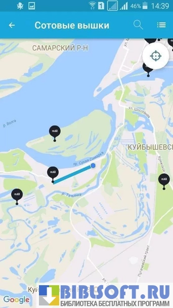 - При помощи GPS покажет все вышки на карте и расстояние между ними;