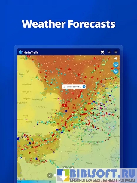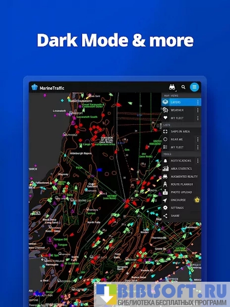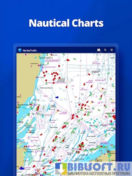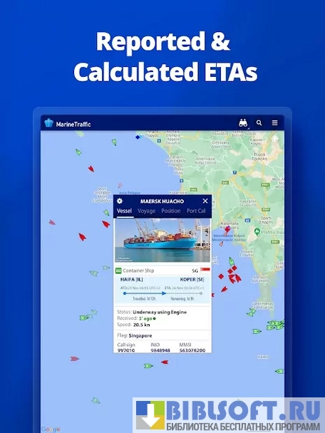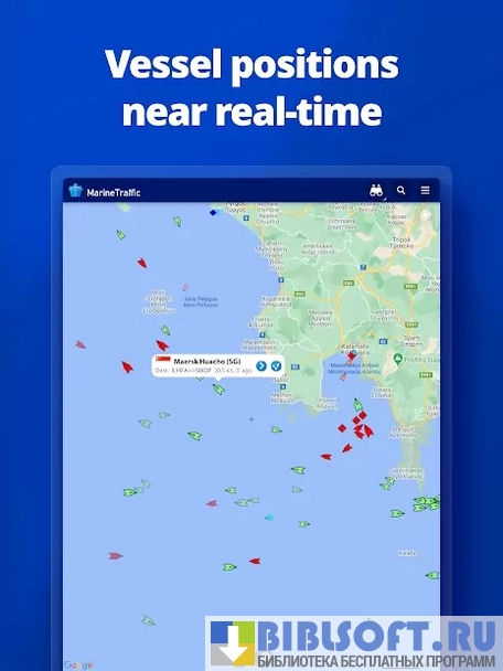 MarineTraffic – Android приложение, работающее в интеграции с автоматической системой идентификации AIS, с помощью которого можно получать реальные данные о местонахождении морских судов: координаты, курс и скорость следования, водоизмещение, государство, которому он принадлежит и т.д.