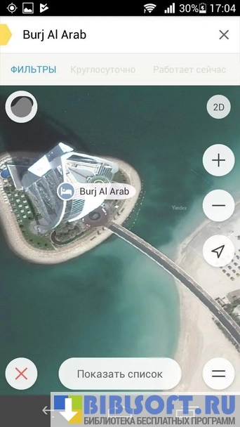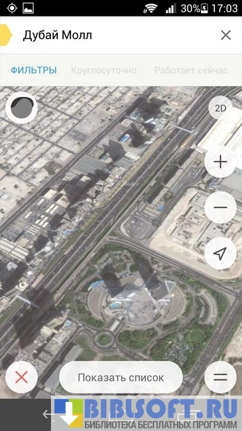 - несколько доступных вариантов просмотра карт: фотоснимки со спутника, гибрид (спутниковые фотоснимки с подписями), схемы и Народная карта (карта, доступная для редактирования пользователем.