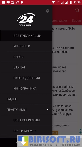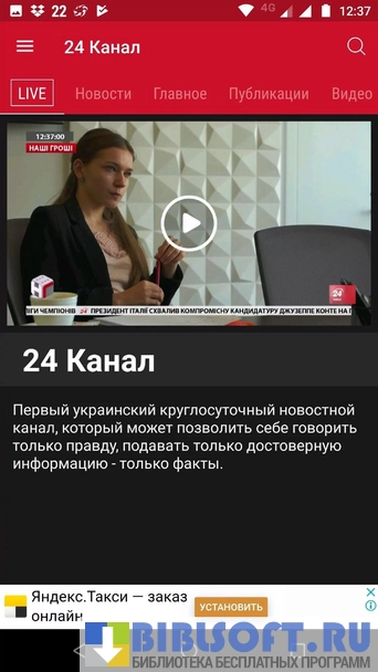Новости 24 - Android приложение для просмотра новостных лент, прямых эфиров, видеороликов и фотоматериалов от Телеканала Новостей 24, ведущего вещание на территории Украины. Информационный архив программы регулярно обновляется, позволяя пользователям отслеживать все главные события, произошедшие в мире за последние 24 часа, а также читать интервью известных людей и статьи от экспертов.