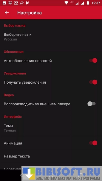 Информационные данные разбиты на несколько категорий, что способствуют более быстрому и удобному поиску по интересующим пользователя направлениям - новостям спорта, мира технологий, экономики, политики, шоу-бизнеса и многим другим. Присутствует отображение вставок из социальных сетей - Facebook, Twitter и Instagram.