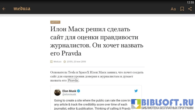 Meduza - приложение для просмотра одноимённого новостного сайта на Android устройствах. С помощью клиента можно просматривать ленту и добавлять понравившиеся новости в закладки.