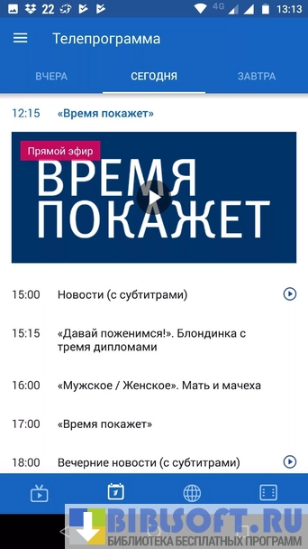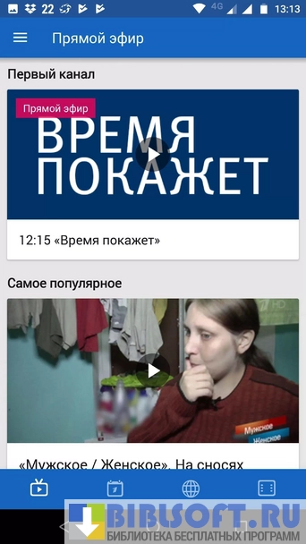 "Первый" – информационно-развлекательное приложение от одного из ведущих телеканалов России. Смотрите рейтинговые передачи, будьте в курсе последних событий, настраивайте уведомления о выходе в эфир любимых программ за 5, 15 и 30 минут до их начала.