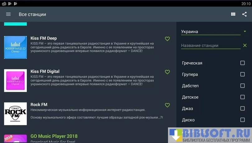 - Возможность добавить свою радиостанцию, если её нет в списке.