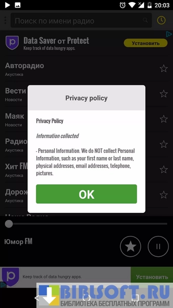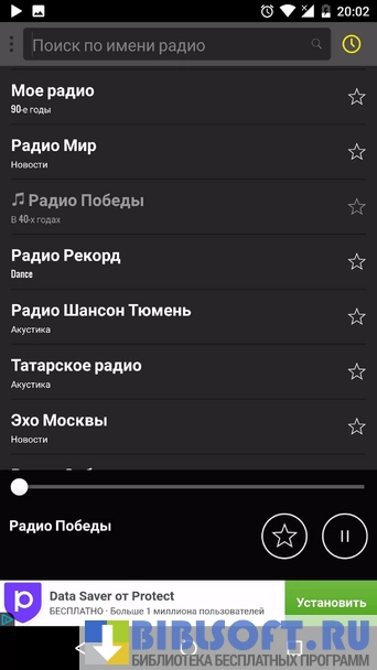 Радио России для Android – виртуальный агрегатор российских радиостанции. Умеет сканировать передаваемые в сеть виртуальные трансляции эфирных программ радиостанций и воспроизводить их.
