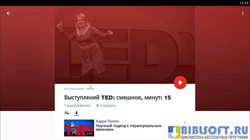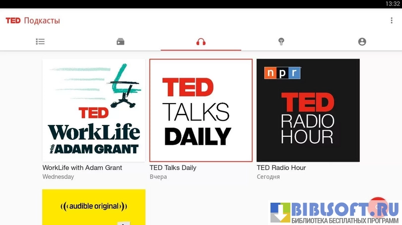 - Подгружает и воспроизводит выступления «гостей» созданной совместными усилиями NPR и TED, виртуальной радиостанции TED Radio Hour;