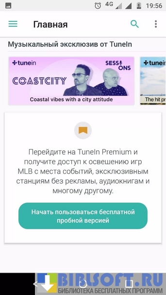 Также доступно более 4 миллионов подкастов. Каталог программы содержит большой список спортивных состязаний, новостей, разговоров и музыки со всего мира. Приложение имеет премиальный пакет, в который входит контент от MLB, NHL, NBA, MSNBC, Al Jazeera и т.д.