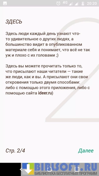 Программа позволяет создать свой анонимный профиль, в котором вы можете делиться любой информацией из своей жизни, а также своими мыслями и рассуждениями. Вы можете просматривать откровения и секреты других пользователей до того, как они пройдут модерацию.