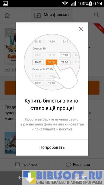 - заказ билетов на интересующий сеанс;