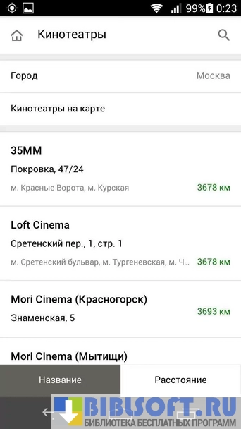 - адреса популярных кинотеатров с картами проезда;