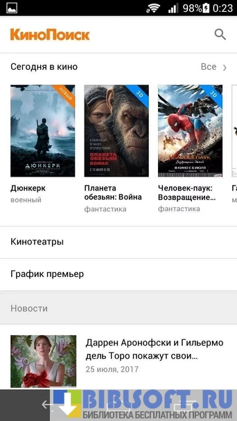 Главное достоинство программы – возможность получить исчерпывающую информацию о любом фильме, который содержится в базе (а она остается самой обширной в рунете). С помощью Кинопоиска можно легко найти хороший фильм, который можно посмотреть в кинотеатре или дома.