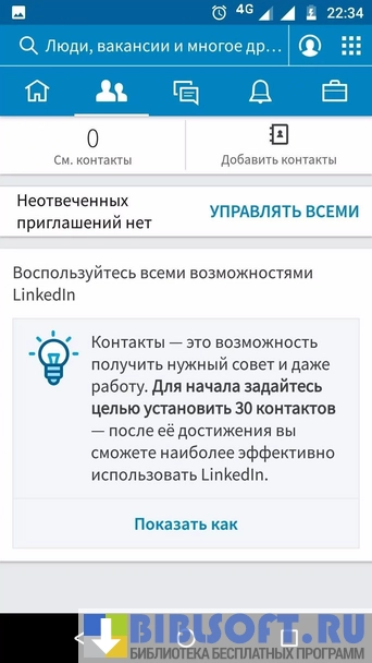 Android приложение для работы с социальной сетью LinkedIn существенно облегчает установление контактов с людьми, а также делать все то, что будет актуальным для вашего профессионального мира.