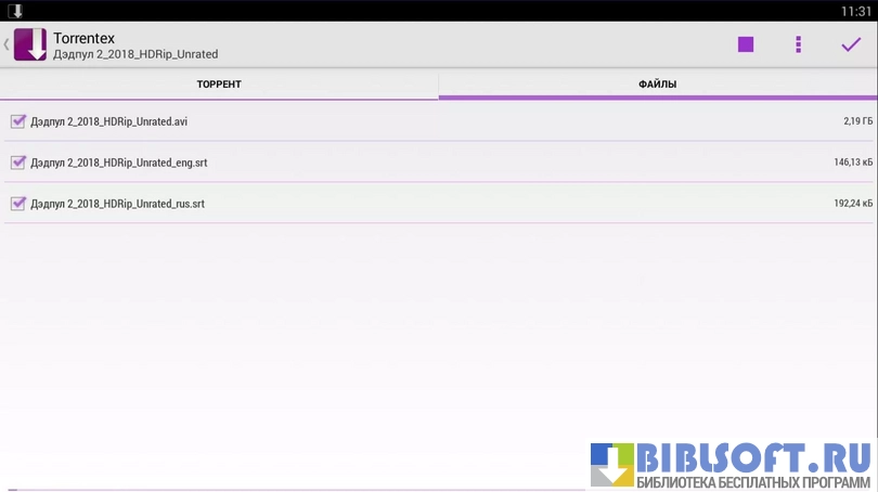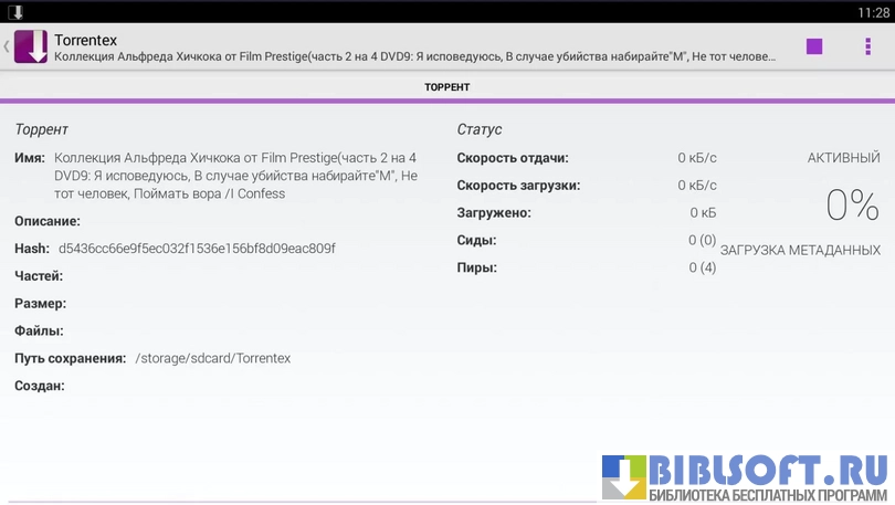 - отображение детализированной характеристики каждого торрент-файла перед запуском загрузки и подключением к пирам.