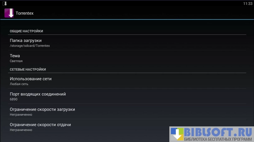 - возможность использования как внутренней памяти устройства, так и внешних накопителей в качестве хранилища торрент-файлов;