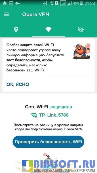 В Opera VPN имеется сканер локальной сети. Он проверит ваш IP-адрес на количество пользователей в сети, узнает смогут ли злоумышленники перехватить ваши данные и даст знать, если администратор сети может отслеживать вашу активность.