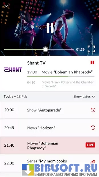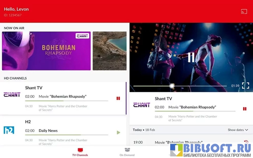Приложение обладает удобным интерфейсом. В верхней части экрана расположена поисковая строка, которая позволяет оперативно найти фильм или сериал по названию. В карточке каждого фильма указывается: краткое описание, год выпуска, жанр, страна-производитель и рейтинг. Для ТВ-каналов предусмотрен предварительный просмотр расписания телепередач. Список ТВ-каналов также разбит по категориям исходя из тематики основного набора программ (спорт, образование, новости, кулинария и другие).
