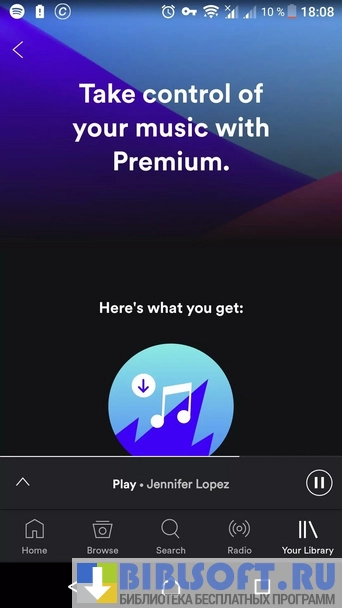 Клиенты Spotify также могут подписаться на Spotify Premium и использовать дополнительные преимущества - загружать любые понравившиеся аудиозаписи на планшет или мобильный телефон; прослушивать музыку без рекламы, и т.д.