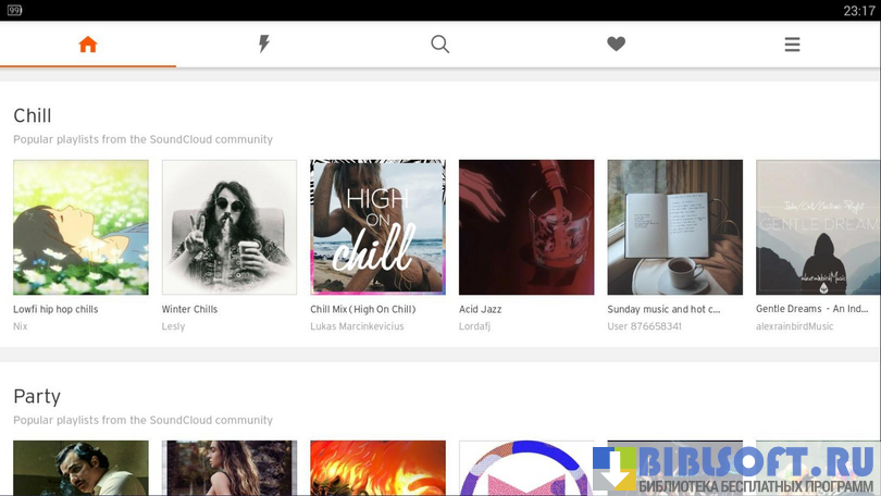 Приложение SoundCloud открывает доступ к крупнейшему собранию музыки всех жанров и направлений. Пользователи мобильного клиента имеют возможность находить аккаунты своих любимых исполнителей, подписываться на их обновления, комментировать и оценивать аудиозаписи, создавать подборки из избранных треков, загружать собственные файлы и делиться ними с друзьями.