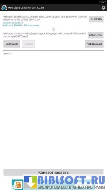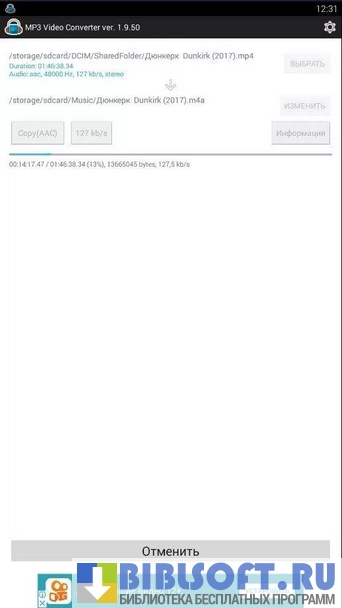 Конвертер позволяет редактировать мультимедийные файлы на устройстве, без необходимости задействования компьютера. Можно вырезать дорожку (преобразовать видео в аудио) или изменить ее формат.