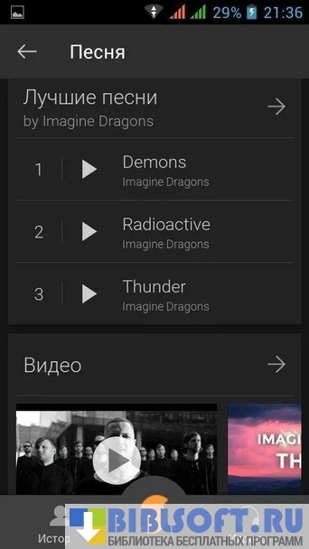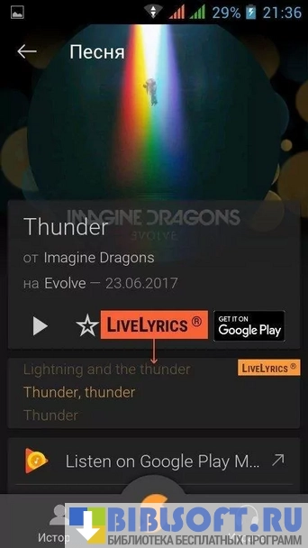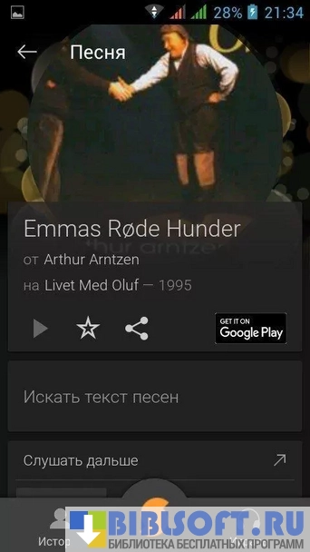SoundHound — Android приложение для распознавания, поиска и воспроизведения музыки. Программа выделяется широким функционалом и собственной технологией идентификации звуковых дорожек.