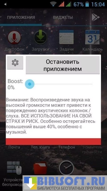 Чтобы громкость была максимальной, просто нажмите кнопку Boost. Для активации беззвучного режима предусмотрен значок с изображением динамика. При уменьшении звука до нулевого уровня, программа отключается. Максимально используйте звуковые ресурсы устройства с помощью этой функциональной утилиты. Приложение будет полезно владельцам смартфонов и планшетов при просмотре фильмов и видеороликов, прослушивании музыки и аудиокниг.