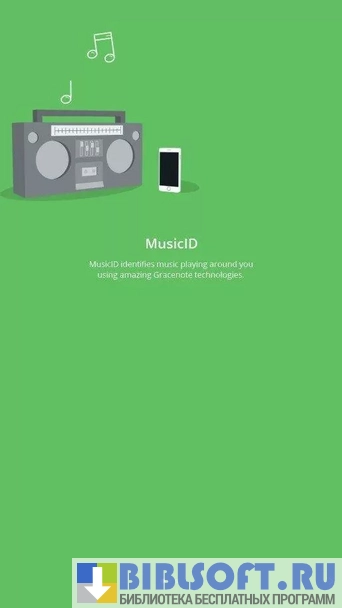 MusicID - приложение, которое быстро распознает играющую рядом мелодию и определяет название песни и ее исполнителя.