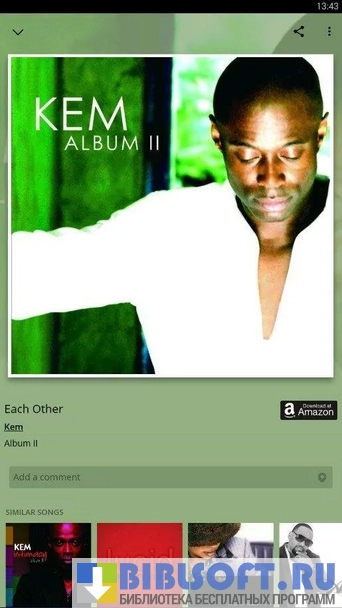 - Найденную композицию или полный альбом исполнителя можно приобрести через приложение в один клик.