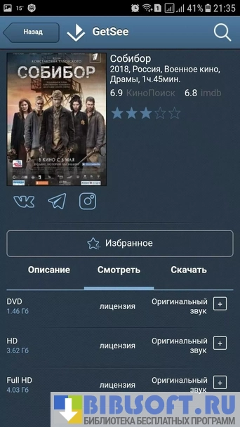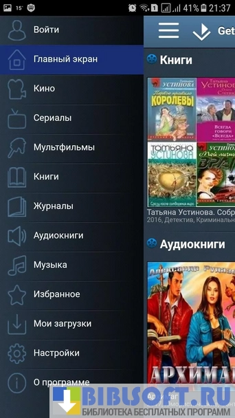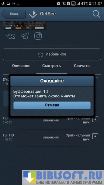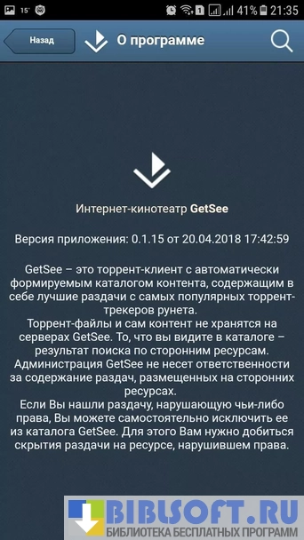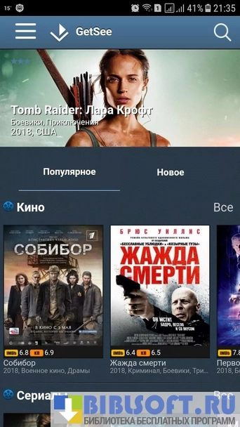 GetSee – Android приложение для просмотра любимых фильмов, мультфильмов и сериалов в превосходном качестве. Пользователи могут прослушивать музыкальные композиции и аудиокниги, читать книги и журналы. Весь материал структурирован по тематическим разделам, коллекция обновляется регулярно. Имеется строка поиска. Есть личный кабинет пользователя. Программа будет полезна всем владельцам смартфонов и планшетов, желающим быть в курсе всех новинок в мире кино, музыки и литературы.