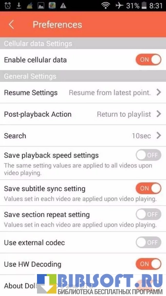 - воспроизведение видео и аудио контента практически в любом формате;