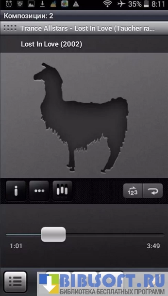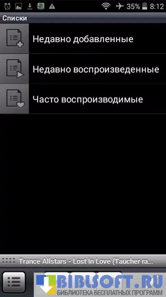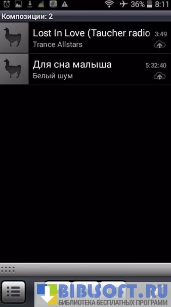 - автоматический поиск всех музыкальных композиций на устройстве;