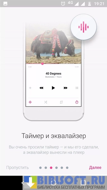 Встроенный эквалайзер имеет ряд полезных настроек, которые сделают звучание песен по-настоящему великолепным.