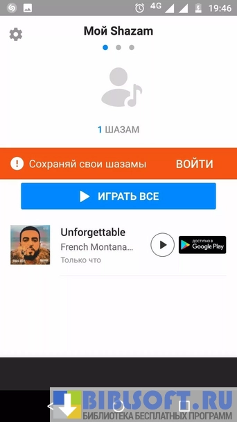 Shazam – приложение для Android, с помощью которого можно узнать автора и название музыкальной композиции, которая в данный момент звучит. Для этого нужно просто нажать на кнопку «Шазамнуть» и направить телефон или планшет в сторону источника звука. На сервисе хранятся данные о свыше 10’000’000 треков различных жанров.