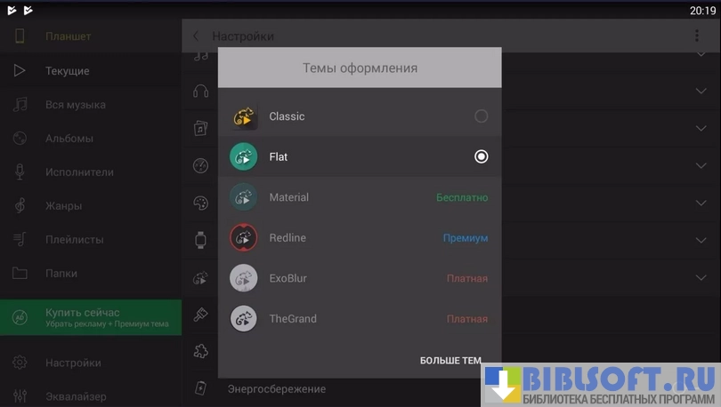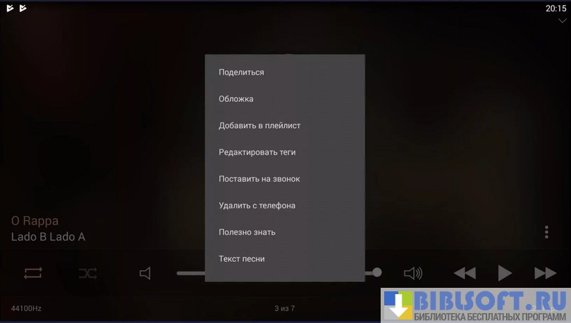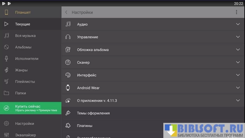 Stellio Плеер – аудиоплеер, имеющий разнообразные настройки и интегрируемый с ВКонтакте и Android Wear. Имеет приятный интерфейс, мощный аудиодвижок. Элементы плеера сходны с цветом обложки альбома, также имеется 5 скинов, которые серьезно меняют внешний вид плеера.