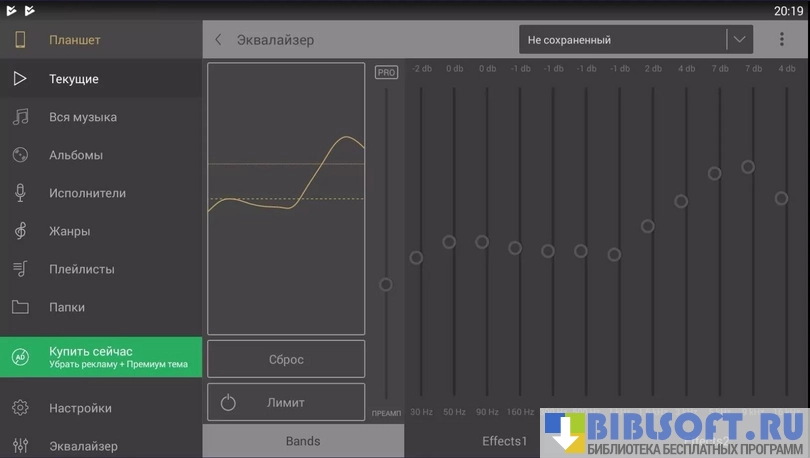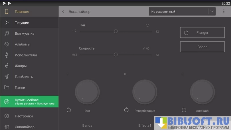 - наличие мощного эквалайзера, с немалым количеством аудиоэффектов и 12-тью полосками;