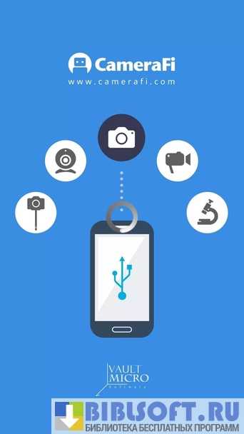CameraFi – приложение для подключения камеры USB к Android смартфону через различные порты с полной поддержкой разрешения. Возможно использование в качестве записывающей видеокамеры с помощью преобразователей. Захват статического изображения и запись видео осуществляется с помощью клавиши регулировки громкости. Пользователь получает возможность корректировать разрешение, качество фото и видео. Отснятые материалы можно просмотреть на устройстве, назначая в названии каждого файла нужные префиксы. В меню программы включены кнопки начала записи, переключения режимов, доступ к настройкам, галерея. Результат съемки можно сохранять сразу на устройство. Для качественного функционирования программы требуются системные разрешения.