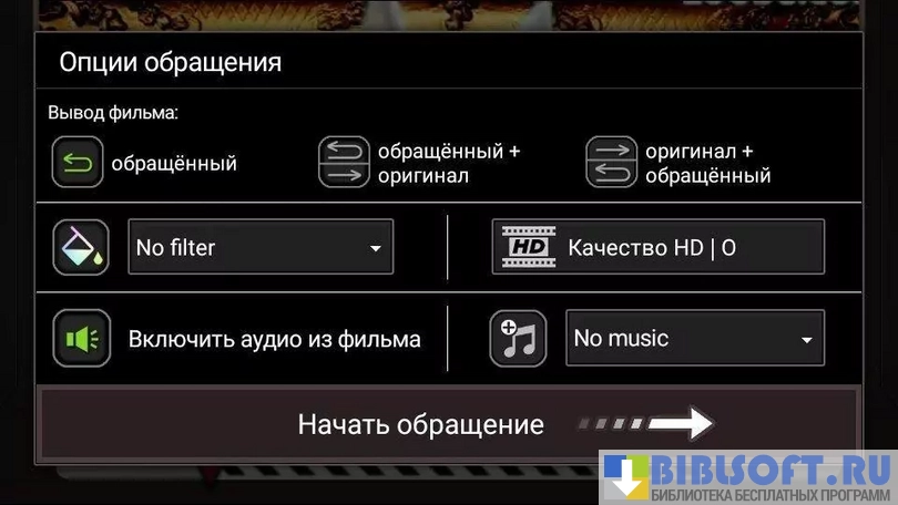 Reverse Movie FX – редактор для конвертации видеозаписей в обратную сторону на Android устройствах. Отличается быстрой работой по принципу обратного изображения.